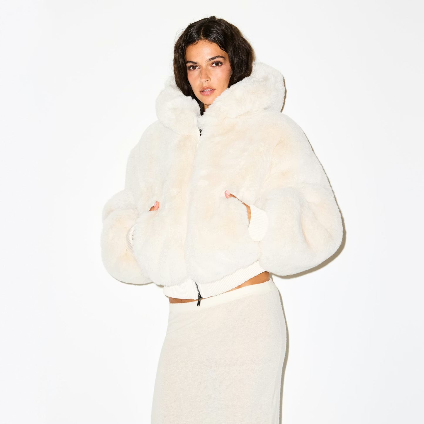 Ultra-soft faux fur with a plush, heavyweight feel. Designed with a relaxed, cropped fit for effortless styling and warmth.